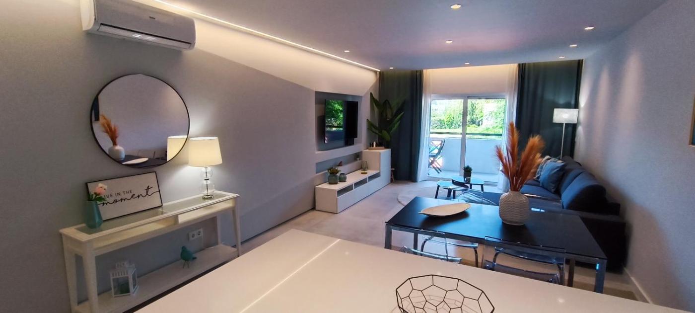 The apartment with a terrace and pool views features 1 bedroom, 2 living rooms, a flat-screen TV, an equipped kitchenette with a dishwasher and an oven, and 1 bathroom with a walk-in shower. Towels and bed linen are provided in the apartment. The property has an outdoor dining area.