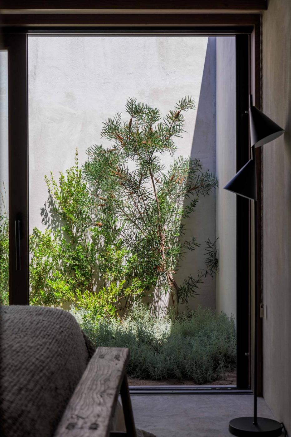 Guests can relax near the outdoor fireplace at the guest house.