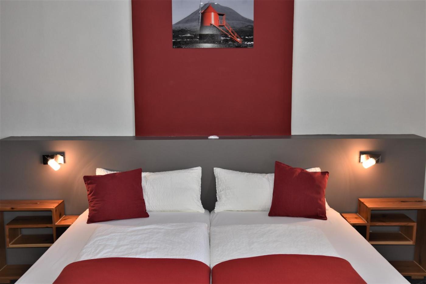 Twin Room with Private Bathroom. This room features a view to the islands main volcano. It has 2 single beds which can be put together. The room also includes a private bathroom ;