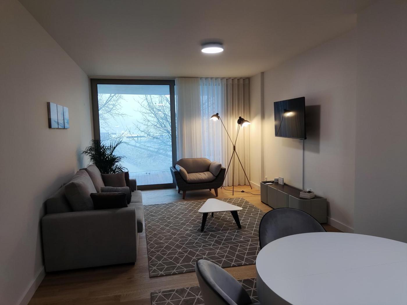 One-Bedroom Apartment. This spacious apartment includes a kitchen, a seating area, 1 separate bedroom and 2 bathrooms with a bath and a bidet. The well-fitted kitchen has a refrigerator, a dishwasher, an oven and a microwave. The air-conditioned apartment offers a flat-screen TV with cable channels, a washing machine, a tea and coffee maker, a dining area as well as sea views. The unit has 1 bed.